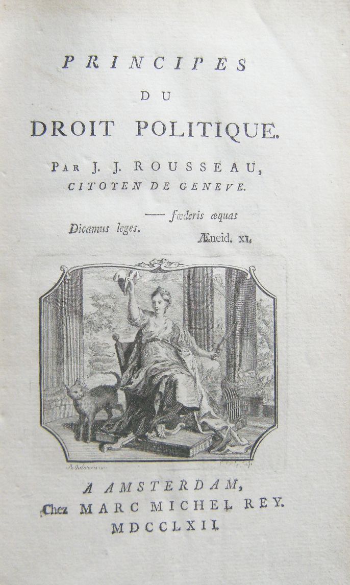 First edition, second issue (known as 'type B'), of Rousseau's greatest work. It is 'the first great emotional plea for the equality of all men in the state ... a crucial document of egalitarian government'. The printing history of this book has been amply set out by Rousseau's bibliographers T.Dufour and R.A.Leigh at hand of the correspondence between Rousseau and his Amsterdam publisher Rey. On 6 January 1762 Rousseau suggested to Rey to use for this his new book a changed version of the vignette that was used before for the Discours sur l'inégalité. Rey commissioned two vignettes: one showing Justice standing with helm and balance, and one showing Justice seated with cap. Rey chose the former, but in a letter of 28 February Rousseau disapproved of this choice because he finds the result messy. When Rey received this letter he apparently had already started the printing. Yet he decided to meet Rousseau's wishes and made a new title for which he used the vignette with Justice seated. This vignette however was somewhat bigger and Rey decided to move the first three lines of the title ('Du contract social') to the half title. In the mean time he received a new letter in which Rousseau asks for reasons of discretion to replace a note on civil marriage on pages 321 and 322 by another note, a few days later followed by another letter in which he orders to suppress this note as well. Rey again decided to meet Rousseau's wishes and printed again pages 321-324. The suppression of the note meant that page 324 would become blank, and Rey decided to use it for a catalogue of his books. Apparently when these changes were made copies had either already left the printing office or were overlooked. Only few copies of the first issue (known as 'type A') have survived. *Dufour 133. R.A.Leigh, Unsolved problems in the bibliography of J.J.Rousseau, p.21-22. Printing and the mind of man 207. En français dans le texte 162. |